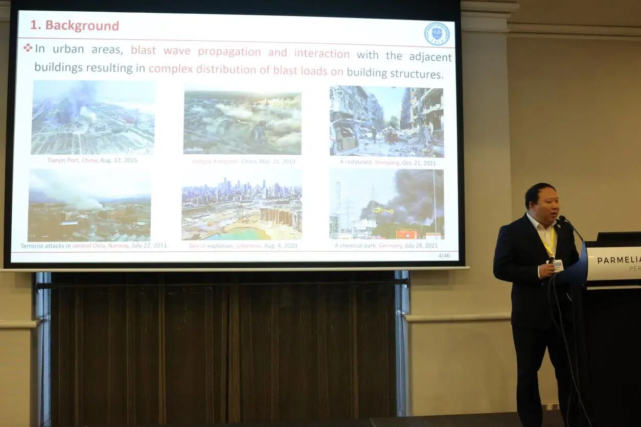 学院院长师燕超教授受邀进行题为《Research on Damage Assessment and Load Inversion Method for Reinforced Concrete Columns after Explosion》的专题报告。报告聚焦欧美色情 工程结构抗爆防护研究团队在灾后爆炸荷载反演、钢筋混凝土柱爆炸灾后评估及修复加固领域的最新研究成果,为意外爆炸事故建筑结构修复与加固提供科学依据。